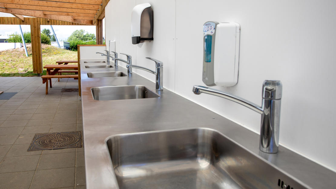 Unsere drei Servicegebäude bieten Küchen, Toiletten, Duschen und Wickeltische – individuell eingerichtet für Herren, Damen, Familien und Menschen mit Behinderungen.