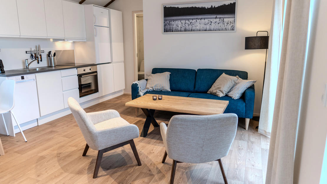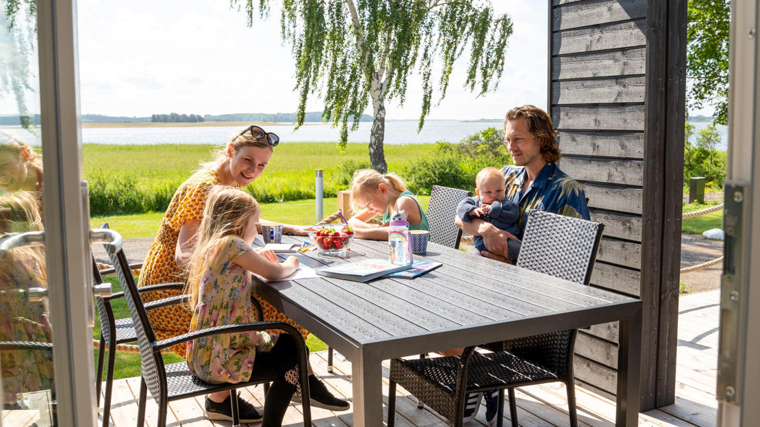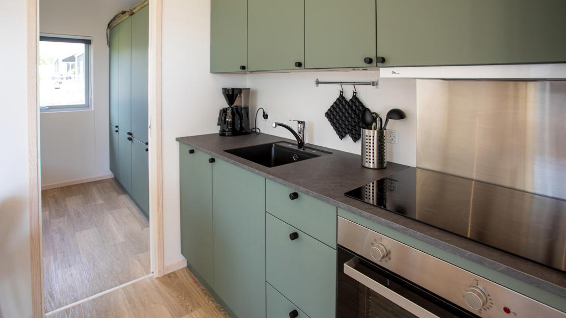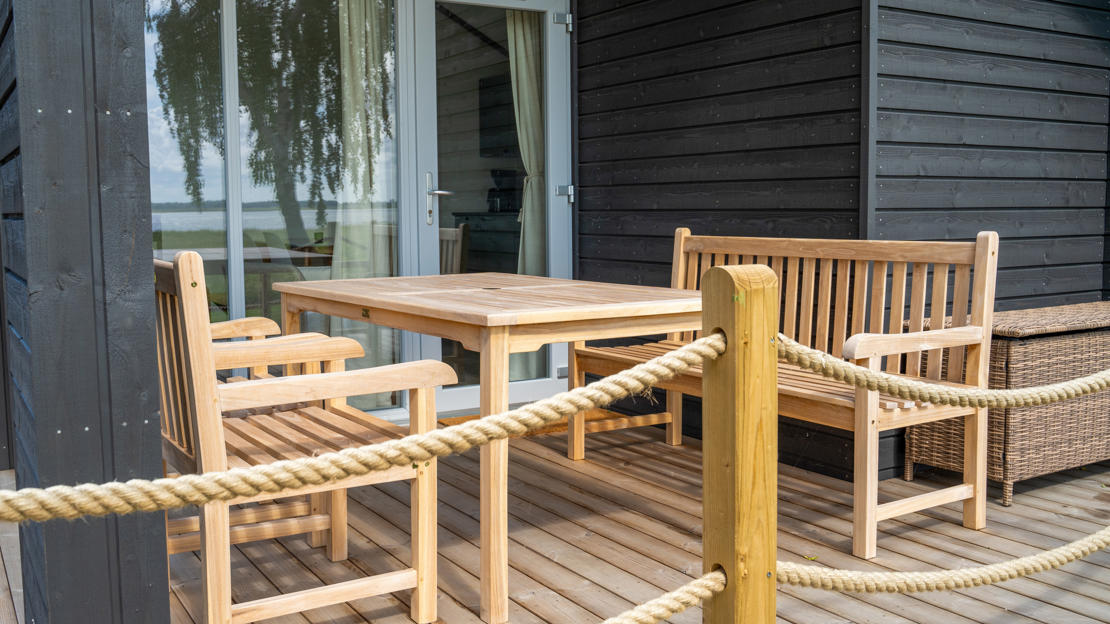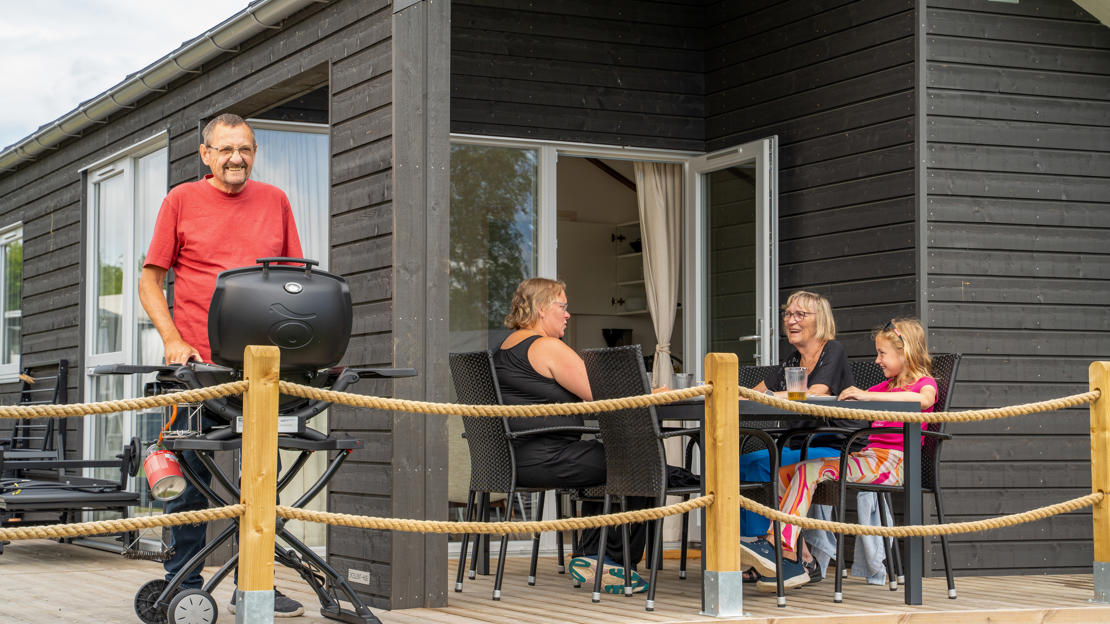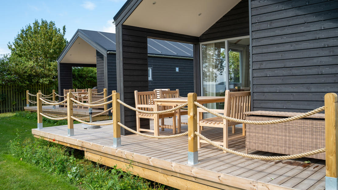 Book a holiday home with plenty of space for the whole family! Our Swan cabins offer 6 sleeping spaces, a large kitchen/living area, and a lovely terrace where you can keep an eye on the kids playing in the green area.