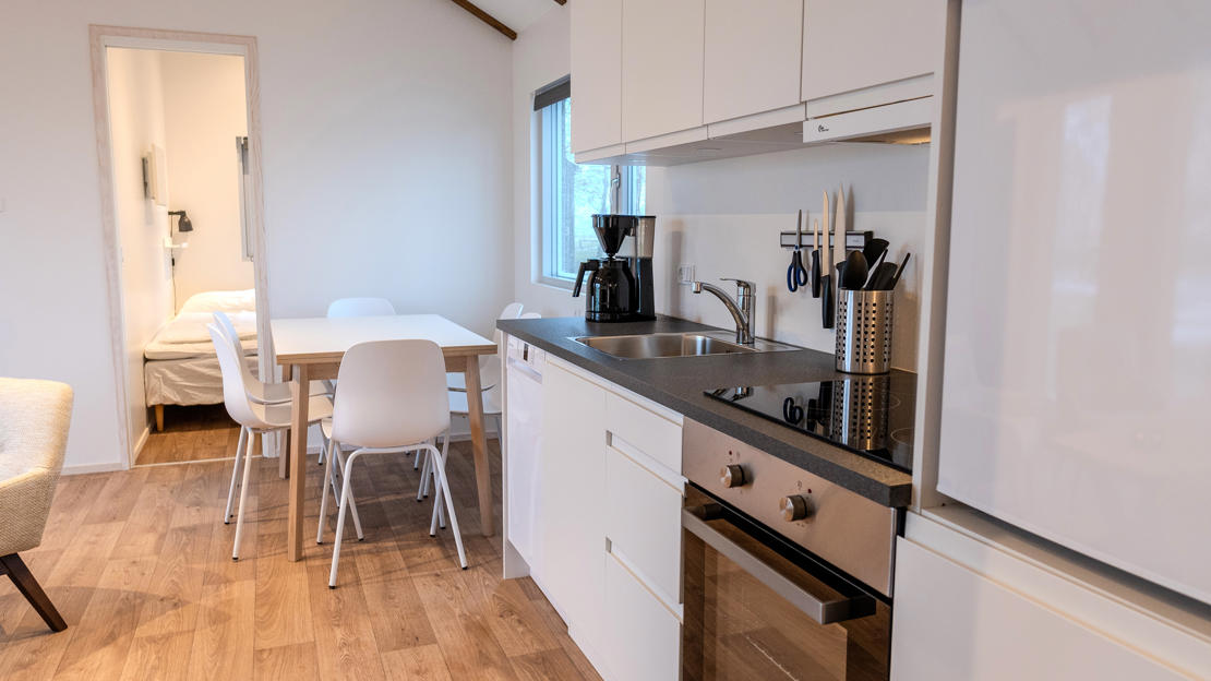 Several of our Fjord cabins offer the most stunning views of the fjord, which can be enjoyed from the spacious terrace. In the Fjord cabins, you’ll find 2 bedrooms, as well as your own kitchen, bathroom, and toilet.