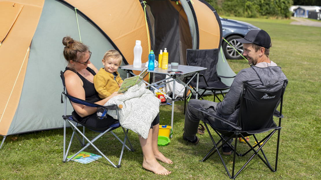Du kan også pakke teltet og soveposen og booke en plads (uden strøm) ved Kæmpehøjen, en smuk gravhøj midt på vores store teltplads, hvor du frit kan vælge hvor du vil sætte dit telt op. Teltområdet ligger lige bag poolområdet og den nye poolservicebygning med bade- og toiletfaciliteter, inde- og udekøkken, grill, overdækkede siddepladser samt vaskeri.