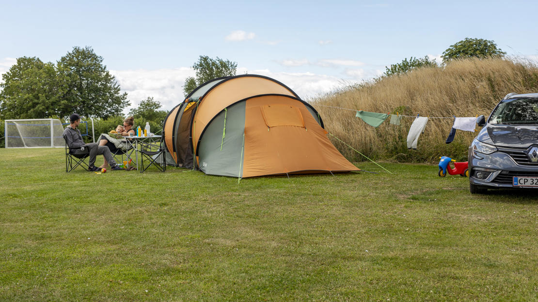 Kæmpehøj-området er uden strøm og kun til telte, samt biler med tagtelte.